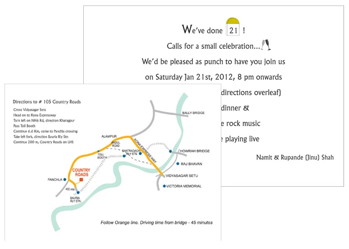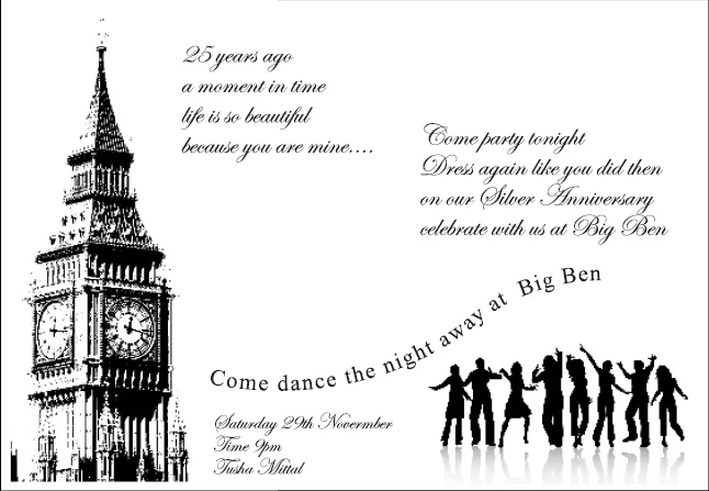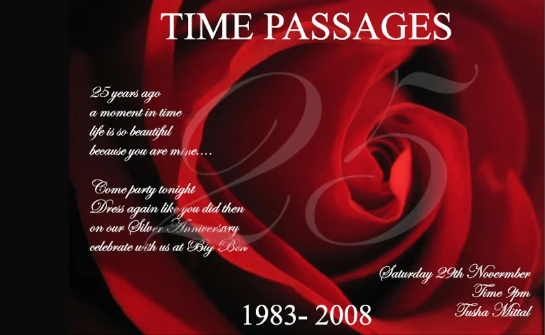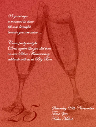 This party invite was created as a romantic and fun design, as the theme was to dress as everyone did 25 years back.
