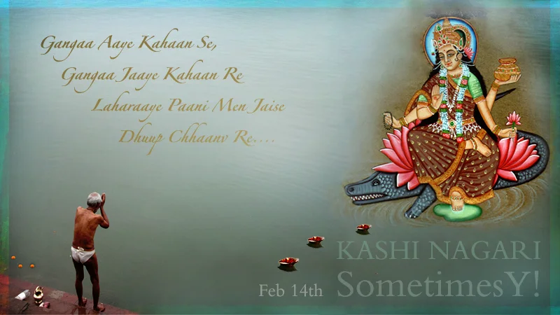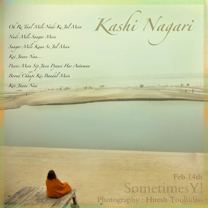 Banaras in all its glory. This card represents the core message - faith. It blends an image, with words and design to give a flavor of the subject of the Photography Exhibition