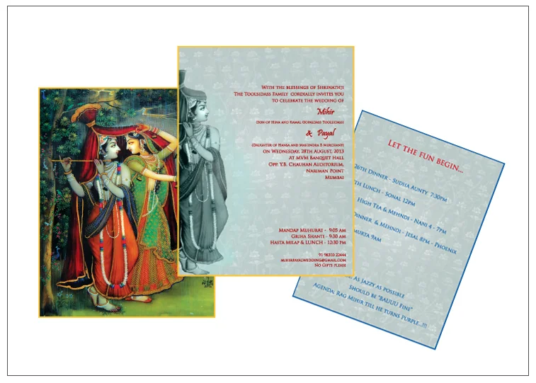 Indian postcards have all but disappeared now. The ancient ambient of Banaras inspired us to bring back this old beautiful design, as an innovative invite for the event.